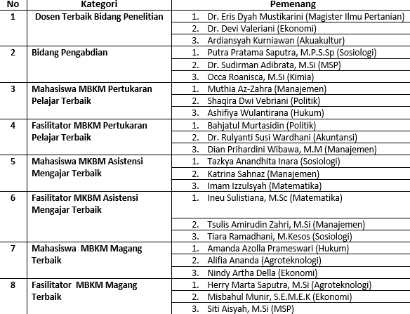 “Secara total dapat kita sebutkan bahwa keterlibatan dosen yang meniliti terdapat sebanyak 245 dosen dan kalau dipersentasikan adalah 85,6%, sedangkan pada bidang pengabdiannya adalah sekitar 60% kontribusi dosen yang mengikuti pengabdian,” tuturnya.