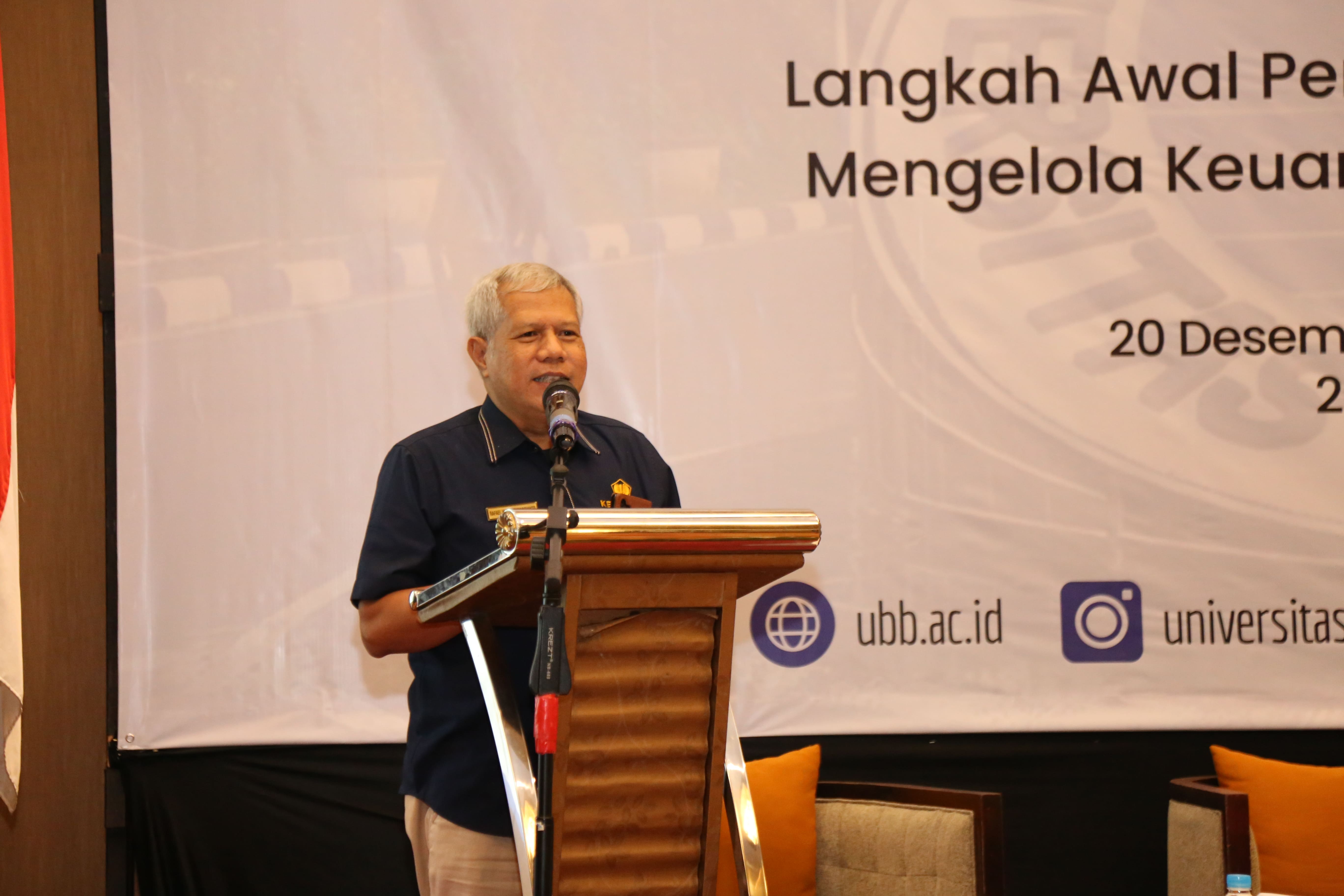 Bangka, UBB- Dalam rangka langkah awal pengelolaan keuangan dengan menerapkan pola Badan Layanan Umum (BLU), Universitas Bangka Belitung (UBB) lakukan rapat koordinasi UBB BLU 2024 bertempat di Soll Marina Bangka Hotel & Conference Center pada Rabu (21/12/2023). Kegiatan ini mengundang dua narasumber yaitu Kepala Kanwil DJPB Provinsi Kepulauan Bangka Belitung Dr. Edih Mulyadi, SE.,M.Si dan Kepala KPPN Pangkalpinang Rafael Widiestumargianto, MM.
